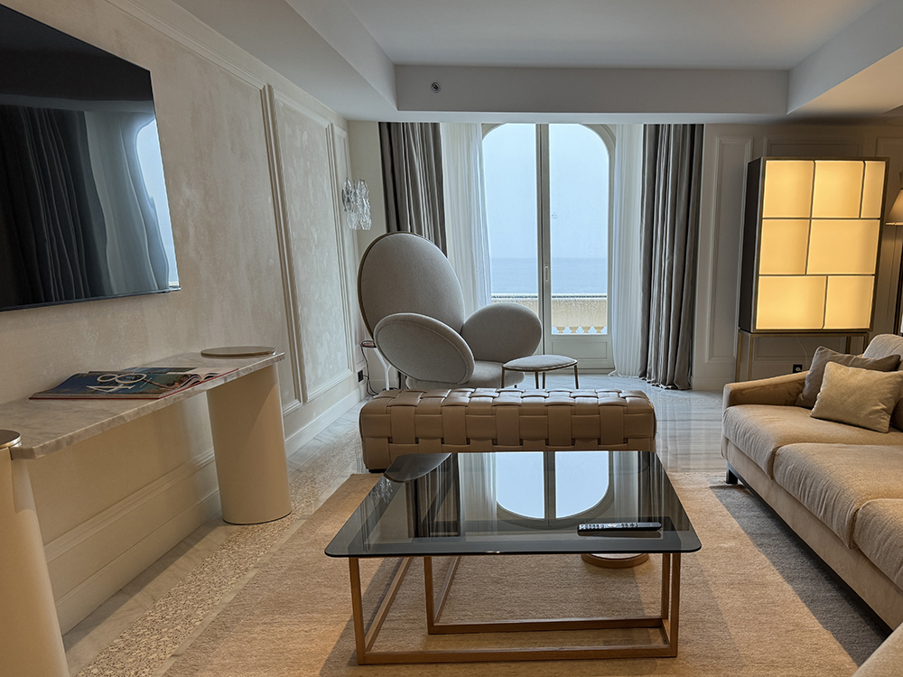 332室の客室のうち72室が海向き。特に見逃せないのは、グレース・ケリー・スイートやアルフレッド・ヒッチコック・スイートなど、有名人の名を冠したスイートルーム。ヒッチコック・スイートのドア前では、実際にヒッチコックの映画「泥棒成金」のグレース・ケリーとケイリー・グラントのキスシーンが撮られたという。