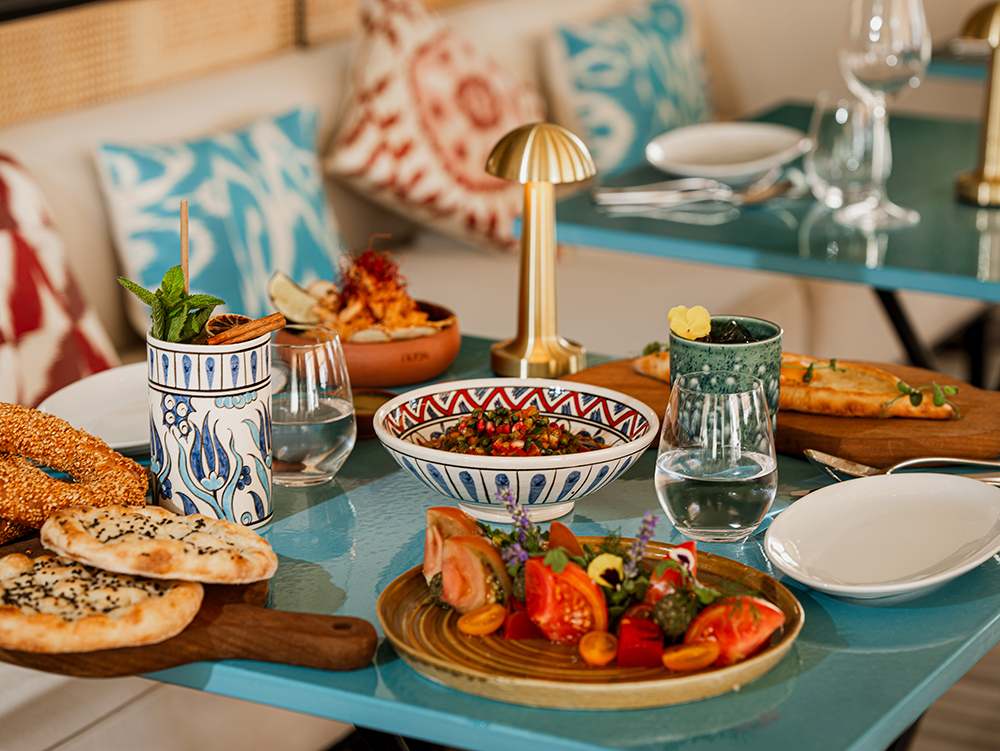 館内には2つのレストラン、ティーサロン、バーがあり、ホテル前の浜辺にビーチレストラン&バーを設ける。2025年4月にはアナトリア料理のレストラン「RÜYA(ルヤ)」がリニューアルオープン。プロデュースはドバイやロンドンでも成功を収める実業家のウムト・オズカンジャ。トルコのアジア側であるアナトリア地方の伝統料理をベースに、モダンなアレンジを加えたメニューを提供。シグネチャーはシェアスタイルの料理。羊肉や豆、ヨーグルト、野菜などの素材を中心に、スパイスやハーブで香り高く仕上げた一皿一皿が、伝統と洗練を同時に感じさせる。レストラン内に伝統的なパン窯を設置し、調理の様子を間近に見ることができるのも楽しい。