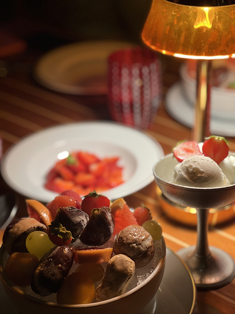 ライトアップされた夜の海を見ながらいただくワインと食事に気分もあがります。ここではぜひ、ドレスアップして挑んでみて。