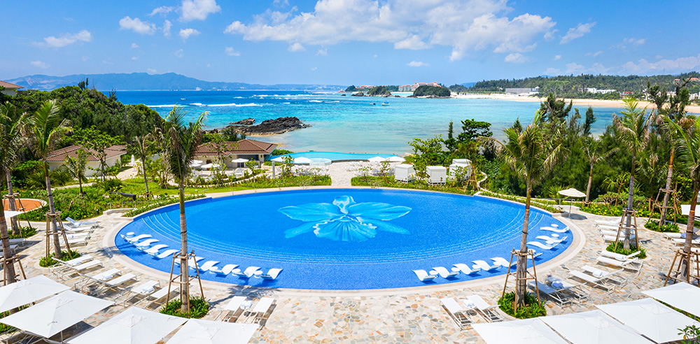 その広大な敷地に点在するのは、2つの‘ウイング’に分かれた宿泊棟を中心に、ホテルのアイコンでもあるオーキッド(洋蘭)の描かれたオーキッドプールや、クワイエットプール、キッズプール、インドアプールの4つのプールが造られています。ファミリー層にも人気の高い東側に建つ‘ビーチフロントウイング’。もう一方は、静かにラグジュアリーなステイを楽しむ大人たちに、夕焼けが美しくドラマチックな西側の‘サンセットウイング’。こちらの棟は‘オーシャンテラスプール’が近く、16歳以上という年齢制限があるため、穏やかな沖縄時間を過ごす大人の居場所に最適でしょう。