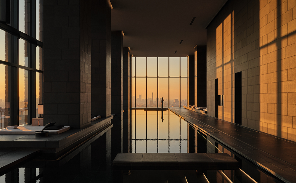 都会のサンクチュアリと言われる客室は全部で84室。室内に入る時には靴を脱ぎ、日本家屋の建築様式を基にデザインされた温かな印象の室内には、私たち日本人の先人たちから築かれた叡智が隅々まで表現され、‘縁側’‘床の間’‘肩まで浸かる深い木製の湯船’など、ケリー・ヒル氏の豊かな感性で日本文化が細やかに表現されています。デラックススイート(71㎡)に始まり、アマンスイート(157㎡)、2フロアに渡る2,500㎡を誇るウェルネス施設、30mの天空のプールなど、どこをとっても開放感あふれる贅沢な造りにシティリゾートとしてのロングステイもお勧めです。私自身も、泊まって改めて感じる贅沢さと居心地の良さに、押し付けではない快適な滞在が体感できるのだと納得しました。もともとアマンを支えてきた共通の合言葉は創設以来「Humble」(謙虚)ですから、それに呼応する何かが感じられるのです。