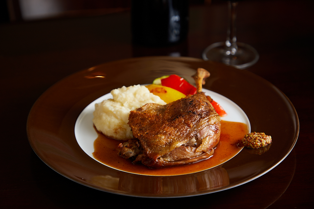 ほろりと骨からはずれる鴨肉はしっとり。ワインが進むしっかり味だ。