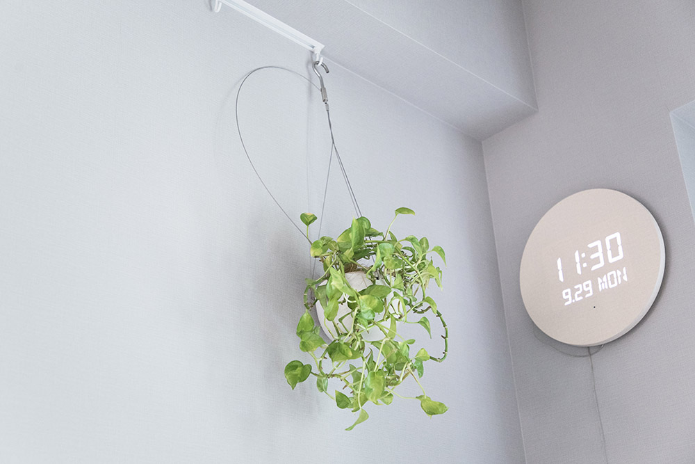 また、観葉植物を飾りたくてピクチャーレールを取り付けてもらいました。ちょうど猫も届かない高い場所なのでこれはよかったですね。