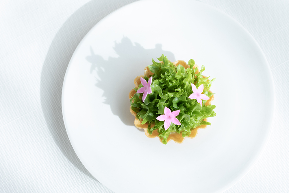 ひとくちシーザーサラダと黒田泰蔵の白磁銘々皿