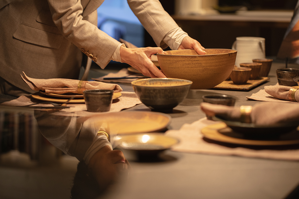 そんな環境で育った私は、器もインテリアもいつも身近にありました。作家の器を試したり、土鍋の使い心地を確かめたり、インテリアについてお酒を飲みながら語り合ったり。それが日常で、その空気がとても好きでした。そうした時間の中で、食卓は器と家具が出会い、暮らしの風景が生まれる場所だと感じるようになりました。