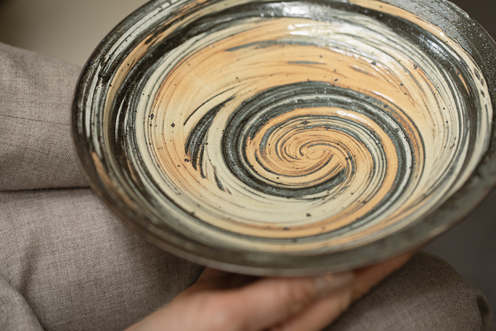 実はこの黄色、昔は「失敗作」と言われることも多かった色なんです。カジュアルに見えるからと、割ってしまう作家もいたほど。でもKeiさんは「食べ物が乗るとすごく良い雰囲気になる」と信じていて、私たちもその考えにとても共感しました。Keiさんの黄色は温かさがあって、形のセンスも抜群。まるで木のような風合いもとても魅力的です。