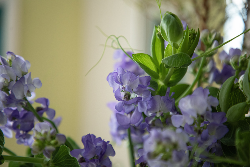 黄色× 紫 、ピンク × グリーンなどのような反対色を入れると、花の見え方がガラッと変わり、元気さや華やかさが生まれます。