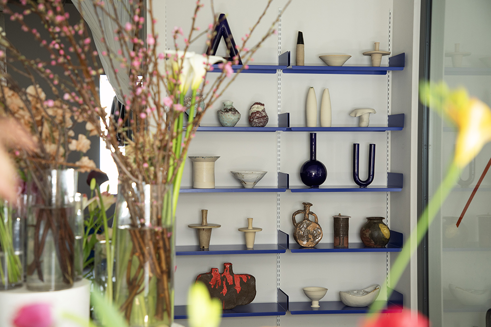 店内に並ぶ花器は、作家による一点ものがほとんど。こちらも、若井さんが「素敵」と感じた作家さんの作品を中心に取り扱っています。